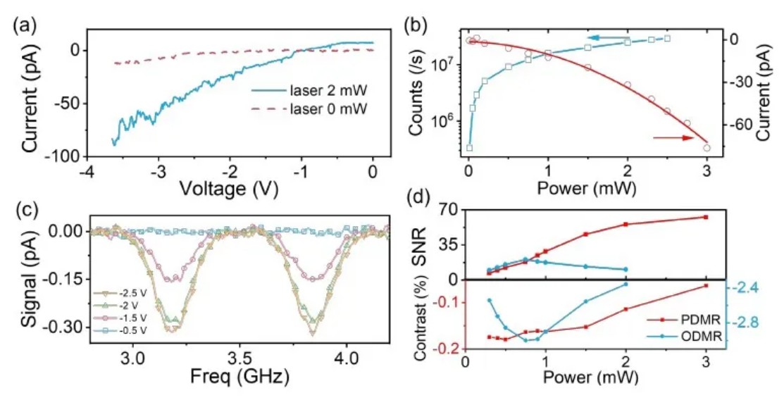 透過 MFLI 採集到的數據,研究團隊發現 PDMR 譜線與傳統 ODMR 譜線在頻率位置上完全對應,且PDMR 的對比度(contrast)顯著優於 ODMR。