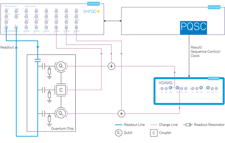 - PQSC 提供全局低延遲反饋,協同 SHFQC+ 與 HDAWG 實現基於量測的控制序列生成