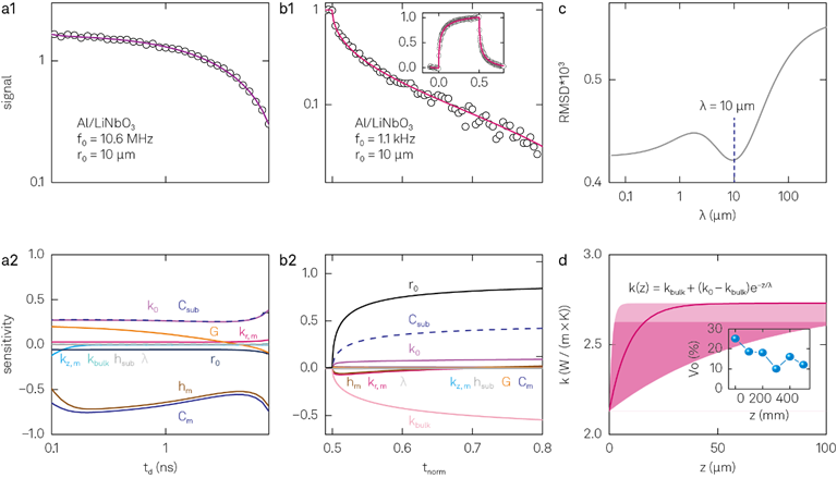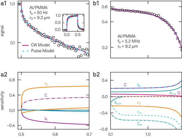 (a1, a2) PWA-TDTR 量測,調制頻率 50 Hz,光斑半徑 9.2 μm
