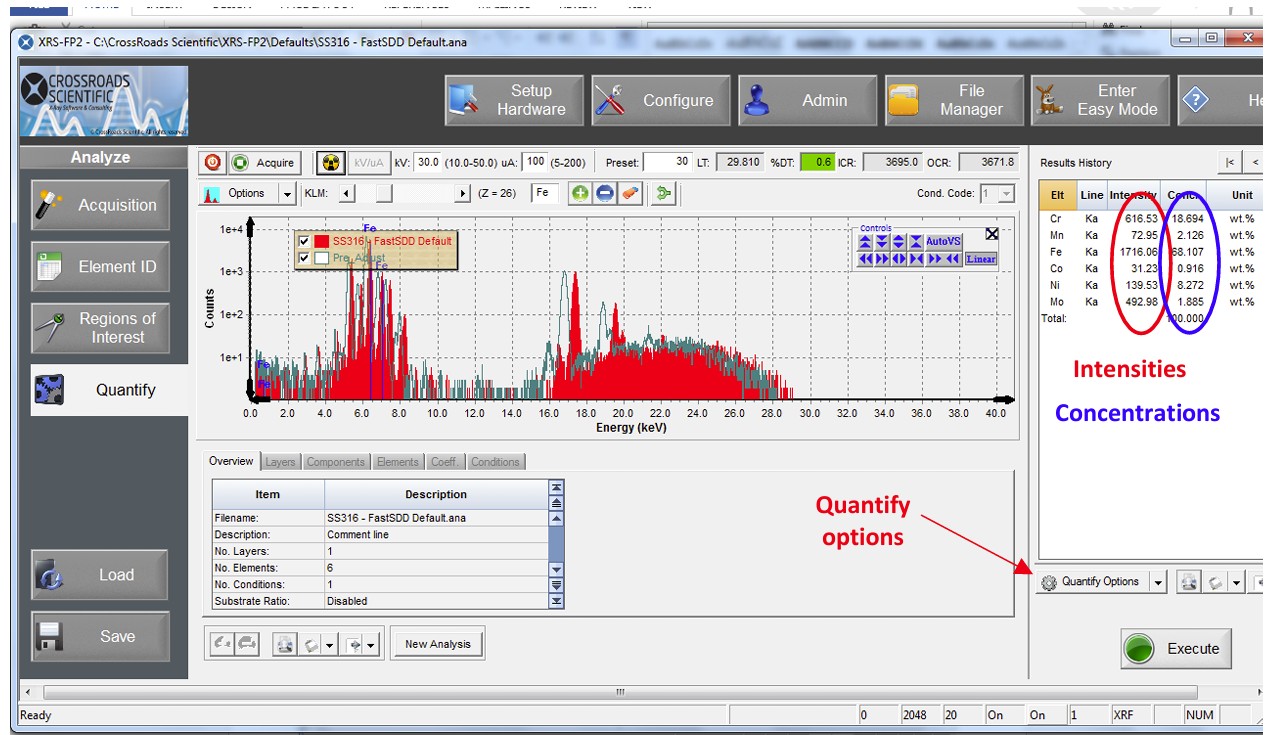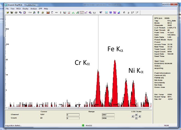 上圖為316不鏽鋼之XRF圖譜,可快速了解待測樣品之元素種類