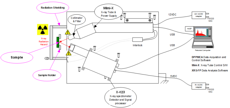 上圖為結構圖,X-Ray 源、SDD 感測器、測試樣品(室)、分析軟體全部包含,可以直接開始實驗